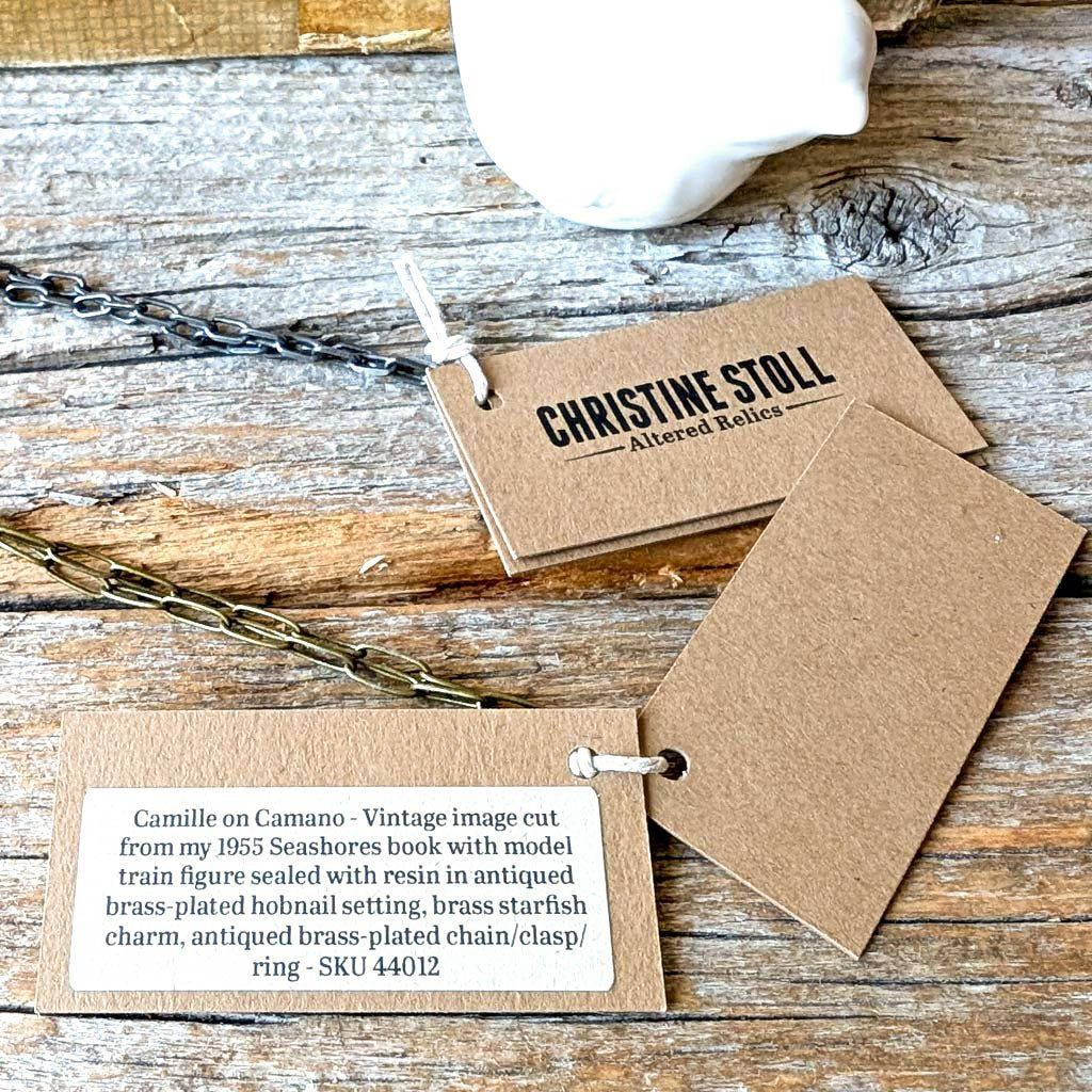 A vintage feather image is the centerpiece of the As the Crow Flies Necklace. The Victorian era image is printed on archival paper and sealed with non-toxic art resin in an antiqued silver setting. A little collection of charms is included - a black enamel crow charm, a tiny vintage skeleton key on a swivel clasp, a vintage watch dial, and a vintage rhinestone. The antiqued silver-plated chain (lead-free, nickel-free) features a lobster clasp and ring in the front for easy on/off.