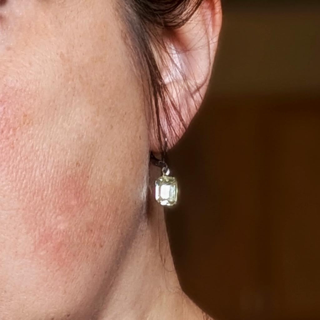 Vintage glass octagon rhinestones in Jonquil Yellow from 1950s Czechoslovakia are set in new prong settings.
