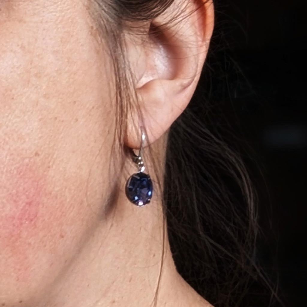 Vintage glass rhinestones in Tanzanite from Swarovski in Austria are set in new prong settings.